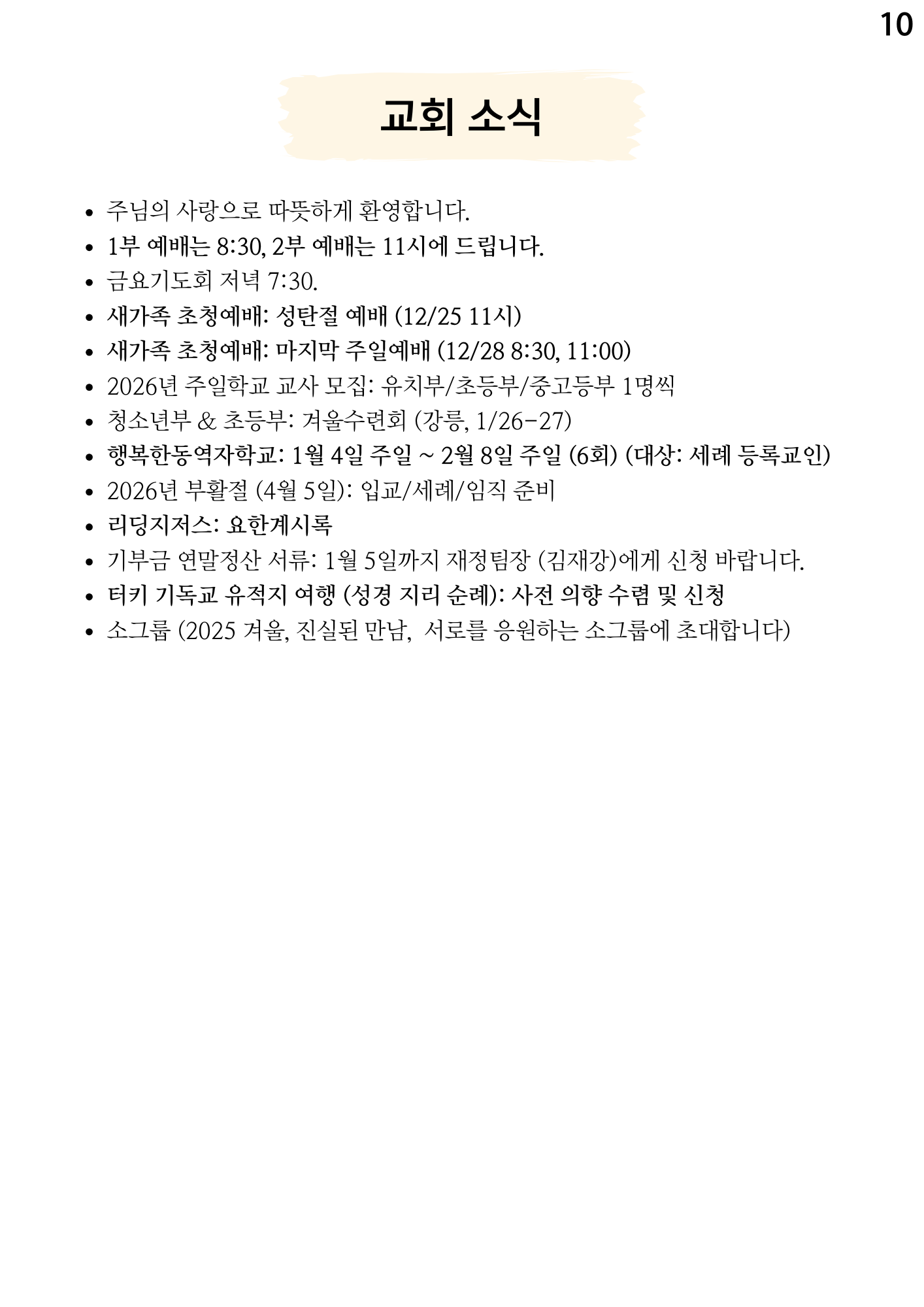 주보 안내 2025년 12월 21일 주보 Author newcity church Date 2025-12-21 07:15 Views 85 Like 0 Unlike 0 Print « 2025년 12월 14일 주보 2025년 12월 25일(성탄절) 주보 » List Reply Powered by KBoard
